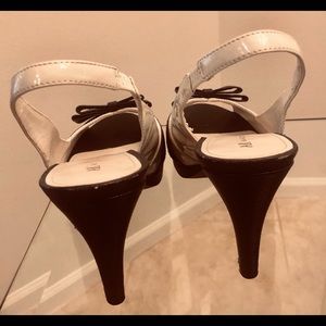 Anne Klein open toed black and white size 10 shoes, 3 “ heels