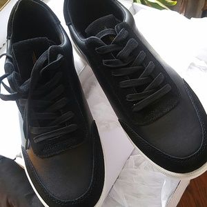 Shoes, black, lace up sneakers, fabric lining, manmade & Leather upper, NWOT *box included