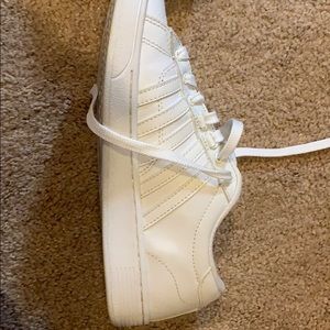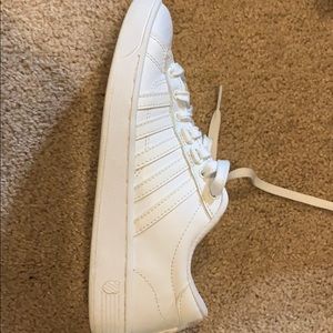 White leather K-Swiss women’s size 6 sneakers worn only a hand full of times. Very comfortable. Run true to size!