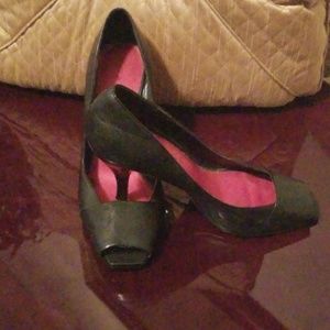 Black frount open toe heal rock it with a skirt or bussiness suits or heels