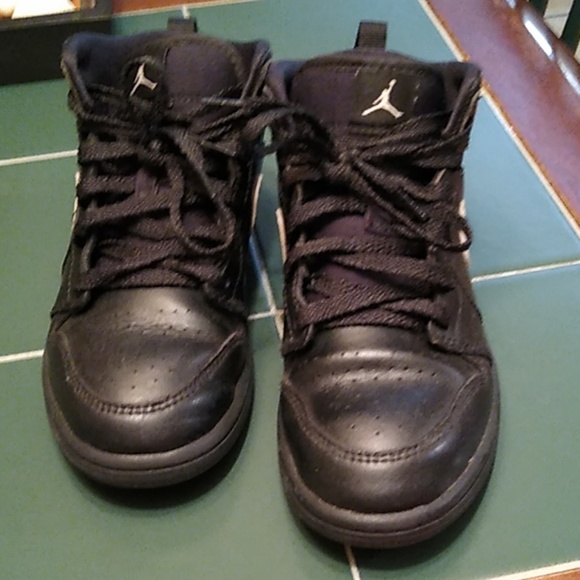 Nike air Jordan black with white check great condition my son out grew them would love to see them go to a child who loves air Jordan