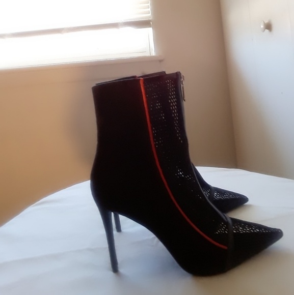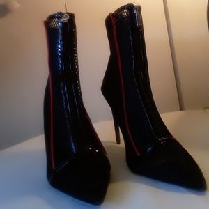 Black Fishnet/Red striped/Suave Cape Robbin Heel Boots Never Worn No longer has shoe boxing