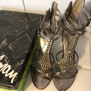 Sam Edelman beaded gladiator style high-heeled sandals. Gray, size 7.5. Excellent condition. Heel height is 4".