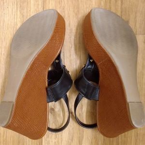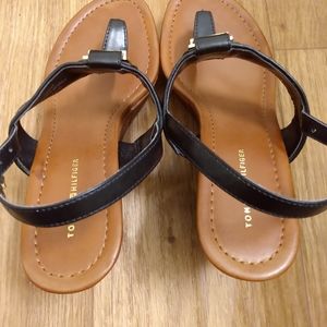 Tommy Hilfiger black and brown wedges with gold buckles. Worn once and in great condition! Perfect way to add an extra chic look with the signature gold buckles. Looks great with everything and you can still sneak in a few wears before winter!