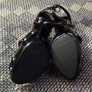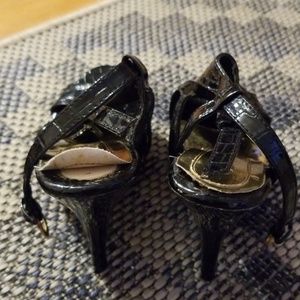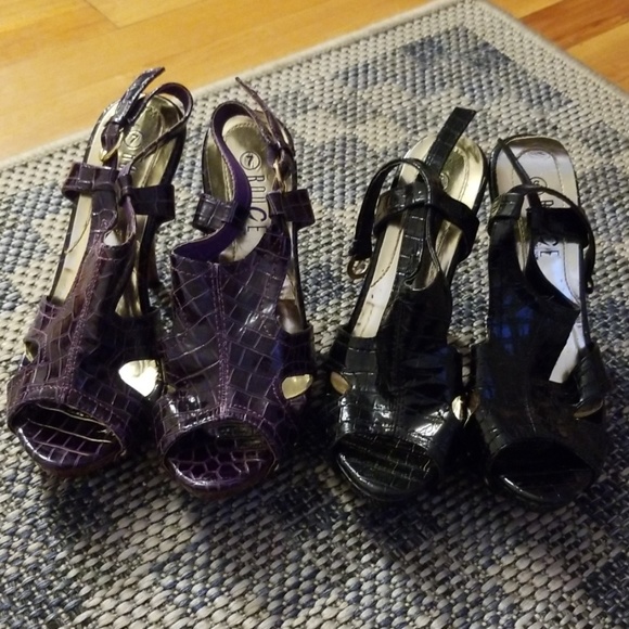 Good pre owned condition. Purple one is size 7 and the black one is size 6. About 4.5" heels. The black one have small flaw see pictures.