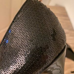 Worn one at a wedding, beautiful stilettos peep toes. Black sequin. I accept decent offers.
