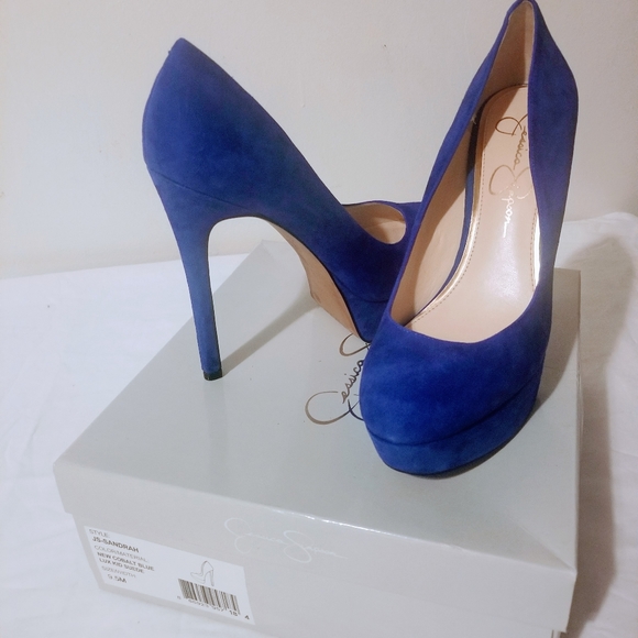 Royal Blue suede platform, 5 inch heel. Excellent condition, worn only once, in original box.