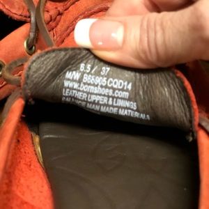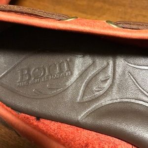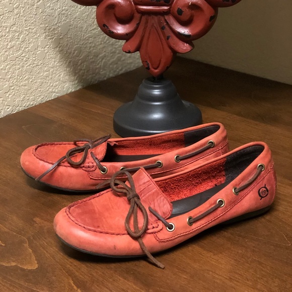 Born size 6.5 muted red loafers with brown tie. Worn 2 times like new condition.