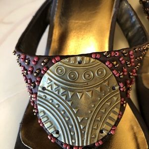 Brown beaded wedge sandals. Like new worn once to a wedding.
