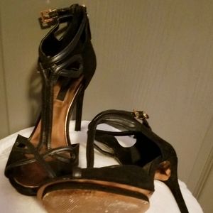 BCBGMAXAZRIA Heels with closed heel ankle t-strap peep toe.