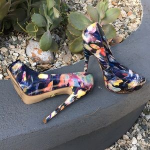 Truth or Dare by Madonna. Front of the shoes have a lift of 1 1/2” like a built in platform. Heels are Spiked and Six Inches