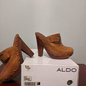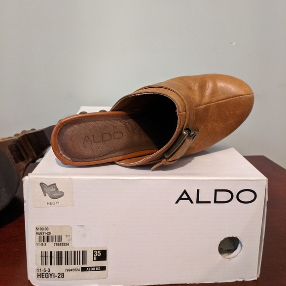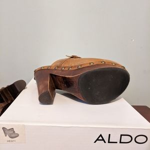 Tan gently used platform sandals in original Aldo box.
