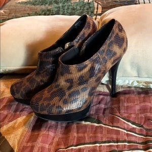 Beautiful leopard print ankle high heel boot like shoes. New , only wore once. Excellent condition.
