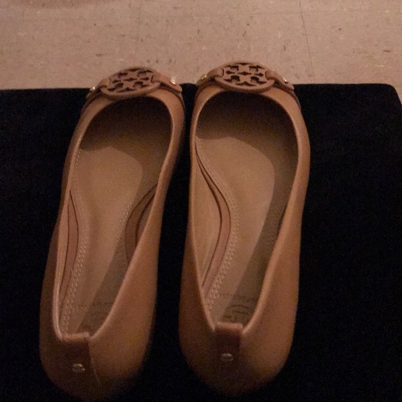 Tory Burch ballerina flat with logo .. size 8 but will fit someone who wears a size 7 1/2 better .. I’m a true 8 but they fit too snug on my feet.. no box