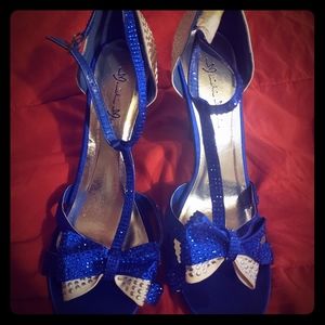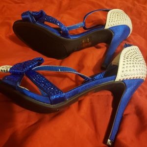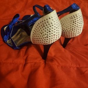 Royal blue and white open toe heels with silver embellishment. Gently used