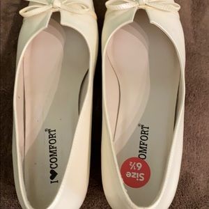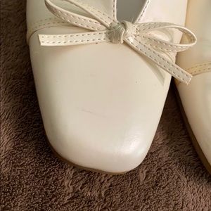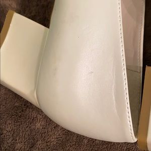 Shoes. Color is pearl. Never worn. Signs of wear such as scratches, discoloration, and dents. Size 6.5. Will ship in a box (not original box).
