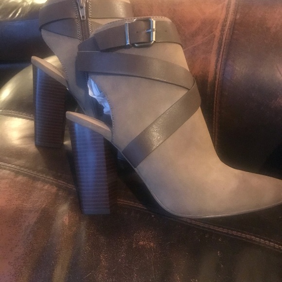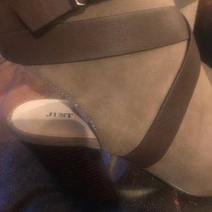 Sexy brown open back type of ankle boots.