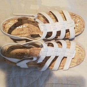 Heel kids shoe, white sandal. Used couple times, good shape.