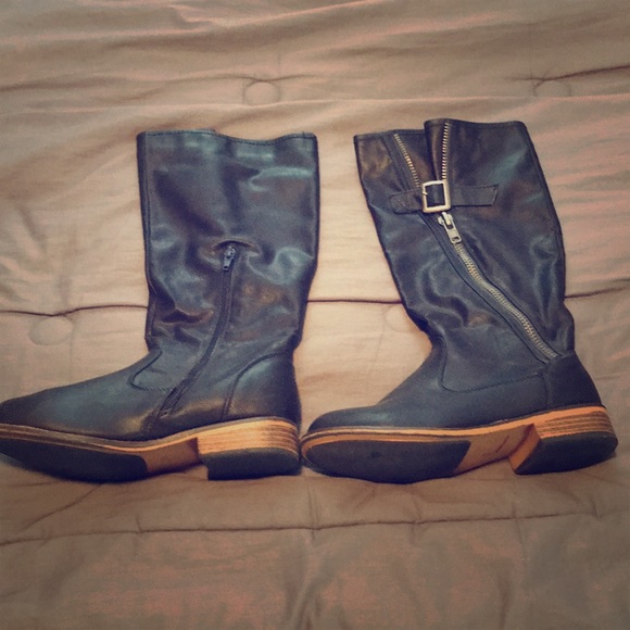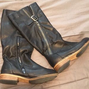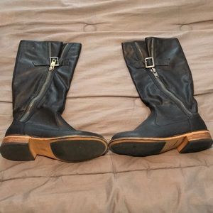 Black leather boots.