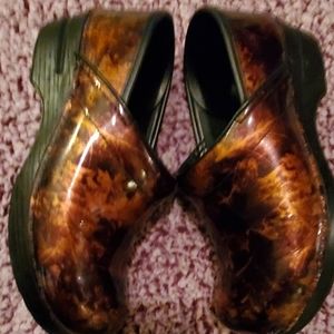 Gorgeous pair of Dansko Professional Nursing Clogs. High gloss patent leather gold and black swirl pattern. Contoured arch support for all day comfort. You are sure to be noticed while taking care of your patients in style. No scratches in leather. They look like they've never been worn.