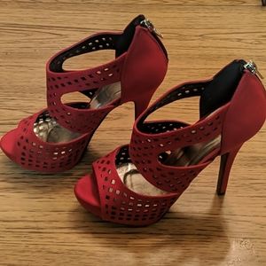 Red felt heels with silver lining 4 inches