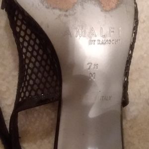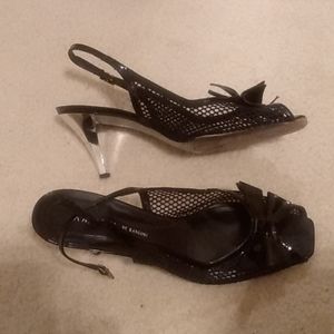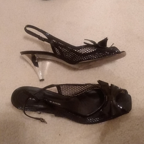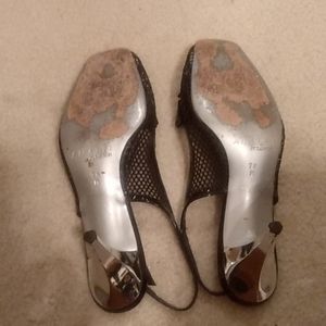 Cute black sling backs with silver heel. In good condition will compliment any outfit.
