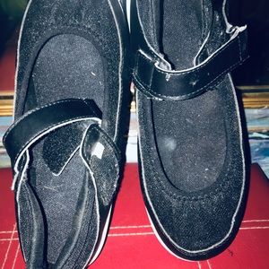 Velcro strap rocker tennis shoes. Very very comfortable like walking on air