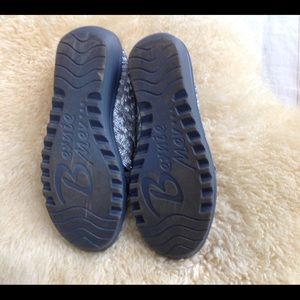 Silver, woven straps, gently used. Wedge heel, comfortable.