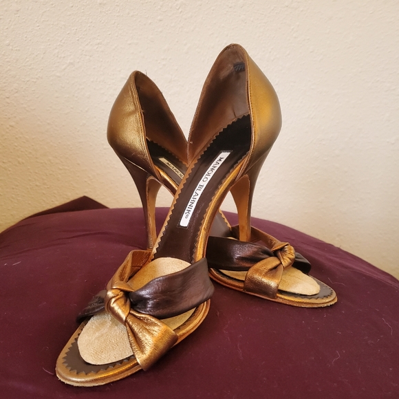 Gorgeous 3 in brown and bronze manolos all flaws pictured, size 6.5