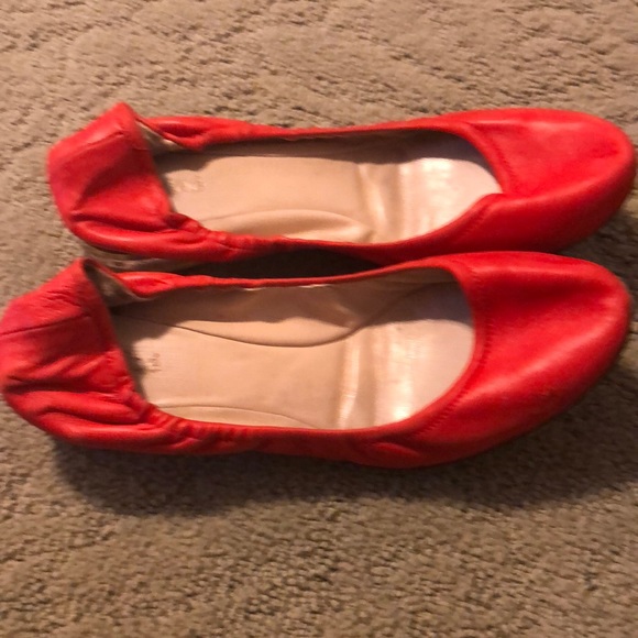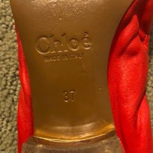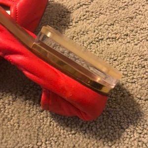 Chloe red ballet flats with acrylic heel rimmed in gold!