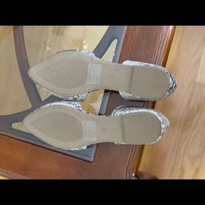 Super cute snakeskin flats! I’m normally a size 8, but these were too tight for me. Brand new, only wore around the house when trying them on!