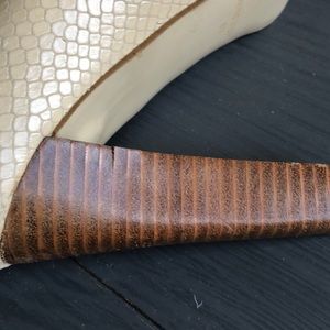 Pumps. Beautiful snake like leather. A few of the stripes around the heel are starting to lift. They are in great shape