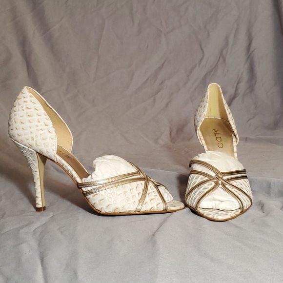 3.5" White and Gold open toe front / Never worn (no tags) or box
