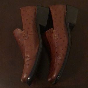 Mocha color slip on loafers in excellent condition leather upper with man made sole