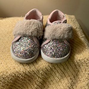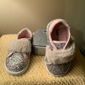 Glittery With Fur Velcro Strap #born #bornbaby #babyborn #ugg #toddlershoe