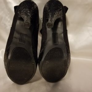 Cocktail party ready in these black bow and black glitter platform heels. Pictures don't do these justice.