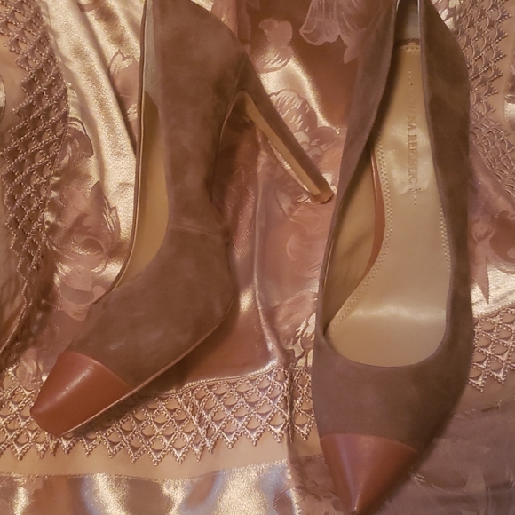Banana Republic heels, Brown Suede with caramel leather toe. Gently worn, like new. Size 9.5.