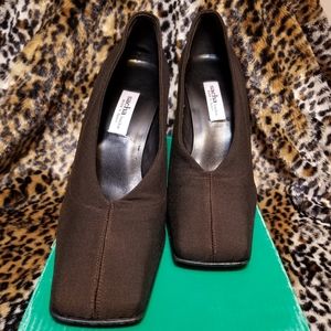 Conservative Mocha Stretch pump, unique heel very cute and chic. Excellent condition no scuffs, etc. In it's original box.
