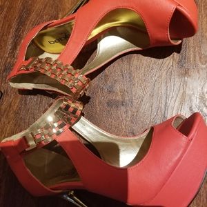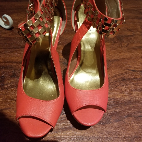 5inch heels worn 2x tiny discoloration on inside outter side of shoes( tangerine orange)