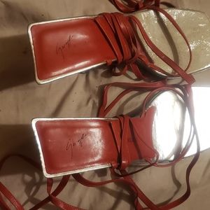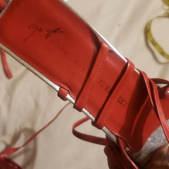 Lovely Giuseppe zanotti red sandals,its about 3inches high,never worn but had those Marks at d bottom cos it's been stored away for a while,its chic and classy..comes from a smoke free and pet free home l,no box but I will package it nicely