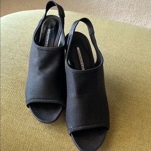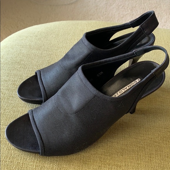 Black open back and front Donald J Pliner shoe . 4 inch heel, perfect for a pair of pants.