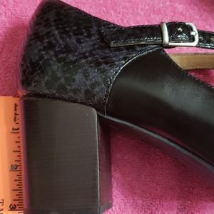 Cross buckle black shoes, great for someone with a slim foot. Studding professional shoe for the office or out on the town. Wore maybe twice.