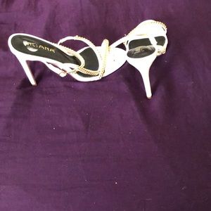 White heels with gold detailing