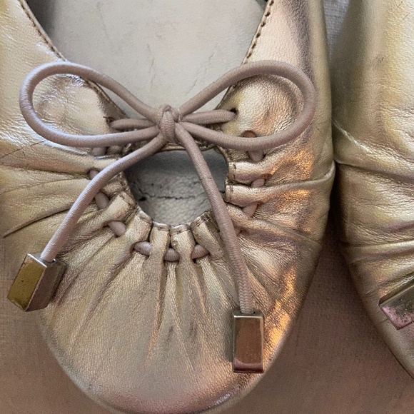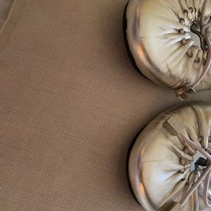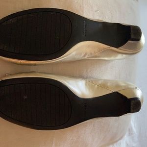 Gently used silver leather flats w/tiny heel. Worn about 3 times.