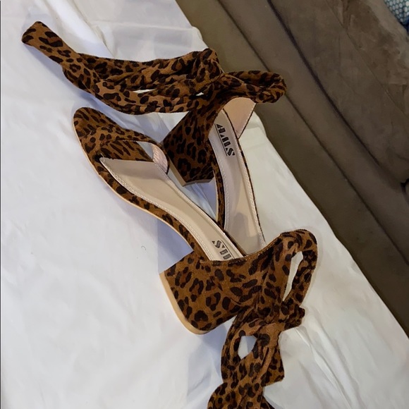 Low heel Cheetah print shoes with a wrap around tie never worn