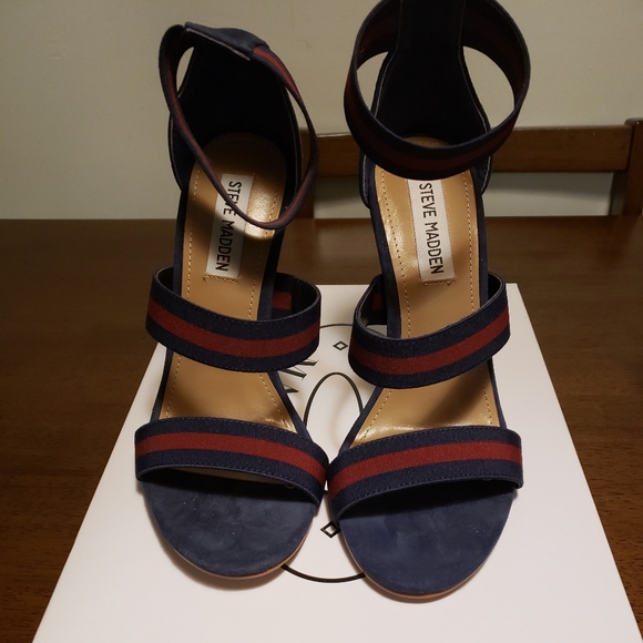 Steve Madden stiletto heels with 3 elastic straps. 4 3/4 height heels.....Never been worn.