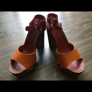 Beautiful urban style leather and wood shoes made in Italy by Gazel. Platform plus thick high heel. Natural wood platform is very healthy for your feet. You won’t believe how comfortable these shoes are. Also available in brown color only.