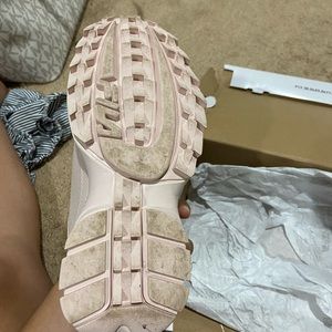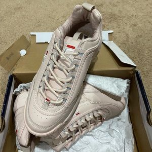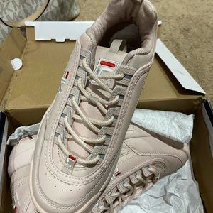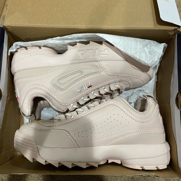 Baby pink Fila shoes. Rarely used. The box for the shoes is a bit beat up!