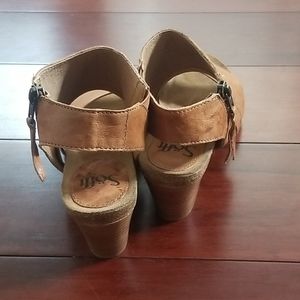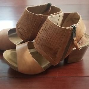 Tan leather wedge sandals never worn, 6 1/2