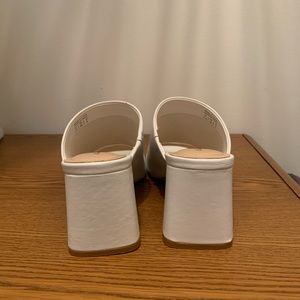 Block heel sandal. True stark white color. Heel is about 2.5/3 inches tall.